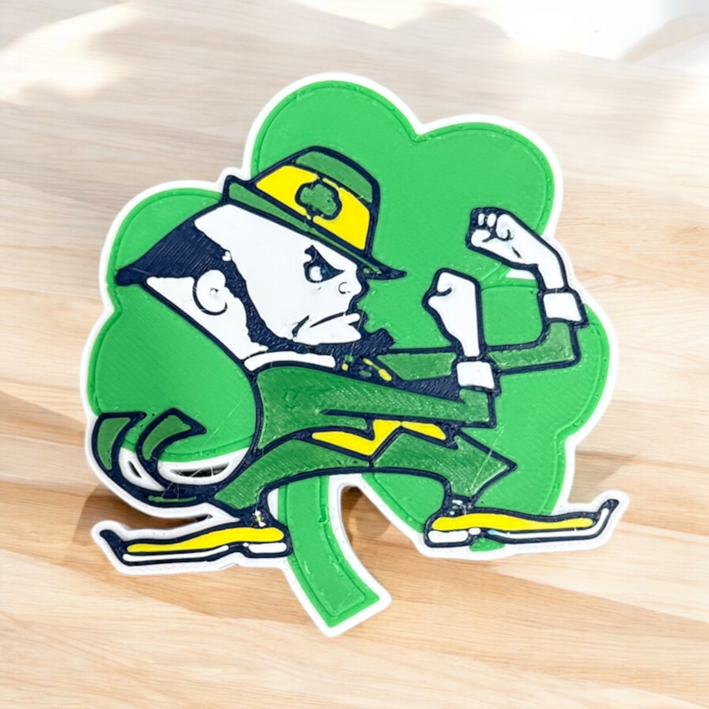 - Made from premium PLA filament for durability and vibrant Fighting Irish colors